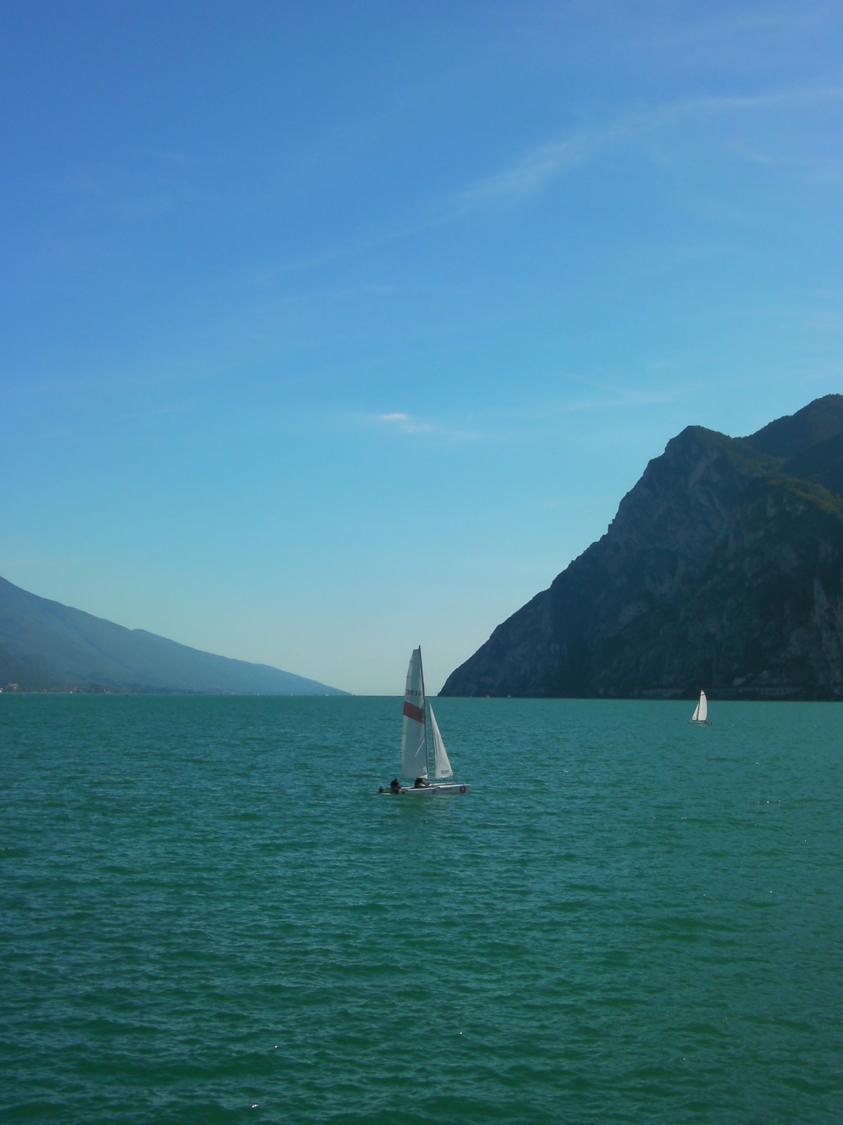 Illemmalla päätimme tallustaa läheiseen Torbolen pikkukaupunkiin. Torbole on erityisesti rantakansan suosima paikka ja varsinkin surffarit viihtyvät siellä hyvien tuulien takia. Tienviitan mukaan Torboleen oli vaivaiset kaksi kilometriä, mutta kuinkas ollakkaan perillä matkaa oli kertynyt kymmenisen kilometriä. Mutta kivahan se on kauniissa maisemissa kävellä, rantabulevardilla sai katsella uimareita ja surffareita ja nautiskella maailmanmenosta.